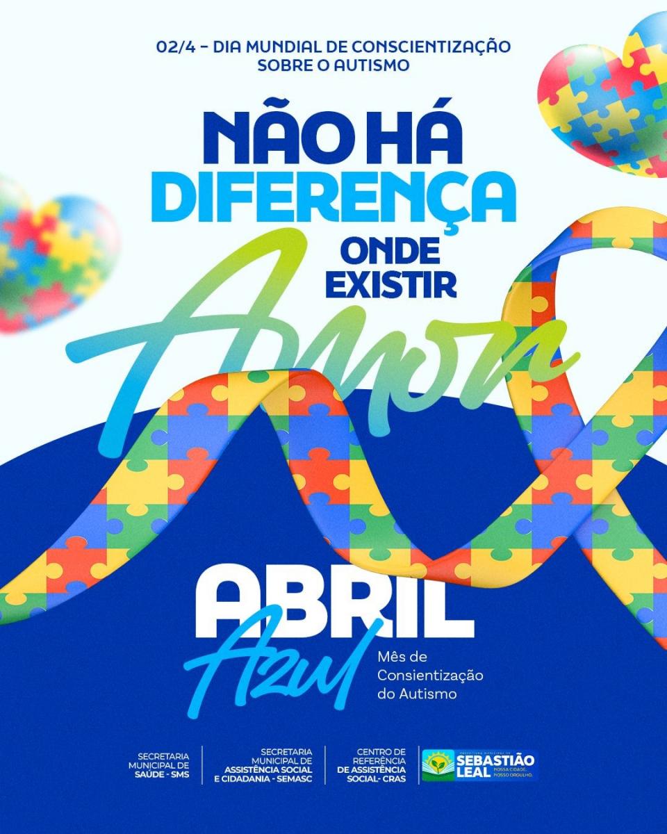 Hoje é um dia de reforçar o respeito, a empatia e a importância da inclusão! A Prefeitura de Sebastião Leal se une a essa causa, reafirmando o compromisso com políticas públicas que garantam os direitos, a dignidade e a valorização das pessoas com TEA (Transtorno do Espectro Autista).